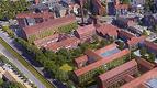 Et flere meter højt nåleøje stikker op af græsplænen foran afdelingen for Børn og Unge, og på den anden side af boulevarden bryder nålespidsen gennem græsset ved TrygFondens Familiehus.
